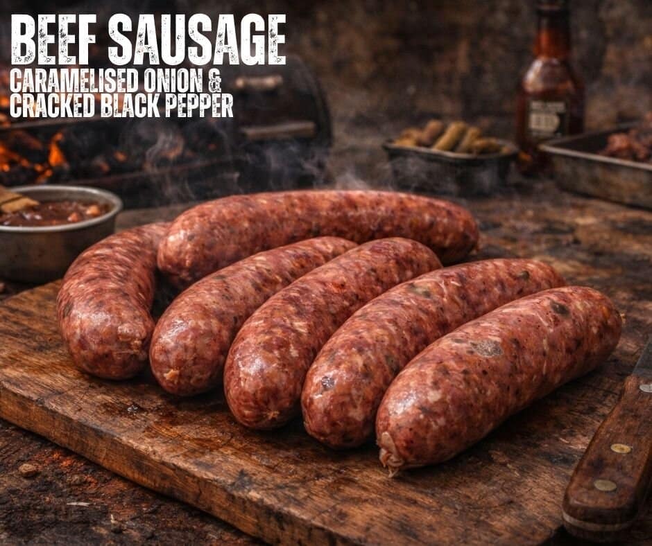 Remember to buy enough of these as they just seem to disappear – Our traditional beef sausage with Caramelised Onion Chutney and Cracked Black Pepper. Meaty, succulent and packed full of flavour. Suitable for pan-frying , grilling, oven or try them on the Barbie with a bit of smoke to take these beauties to another level of awesomeness!