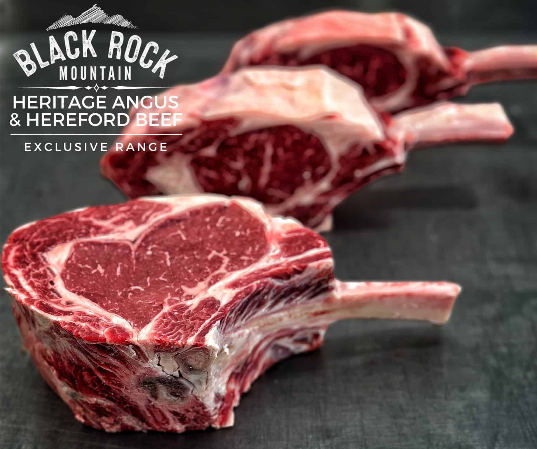 The Black Rock Mountain Cote de Boeuf steak. Exceptional dry aged, hand selected steaks from the finest heritage Angus and Hereford beef.