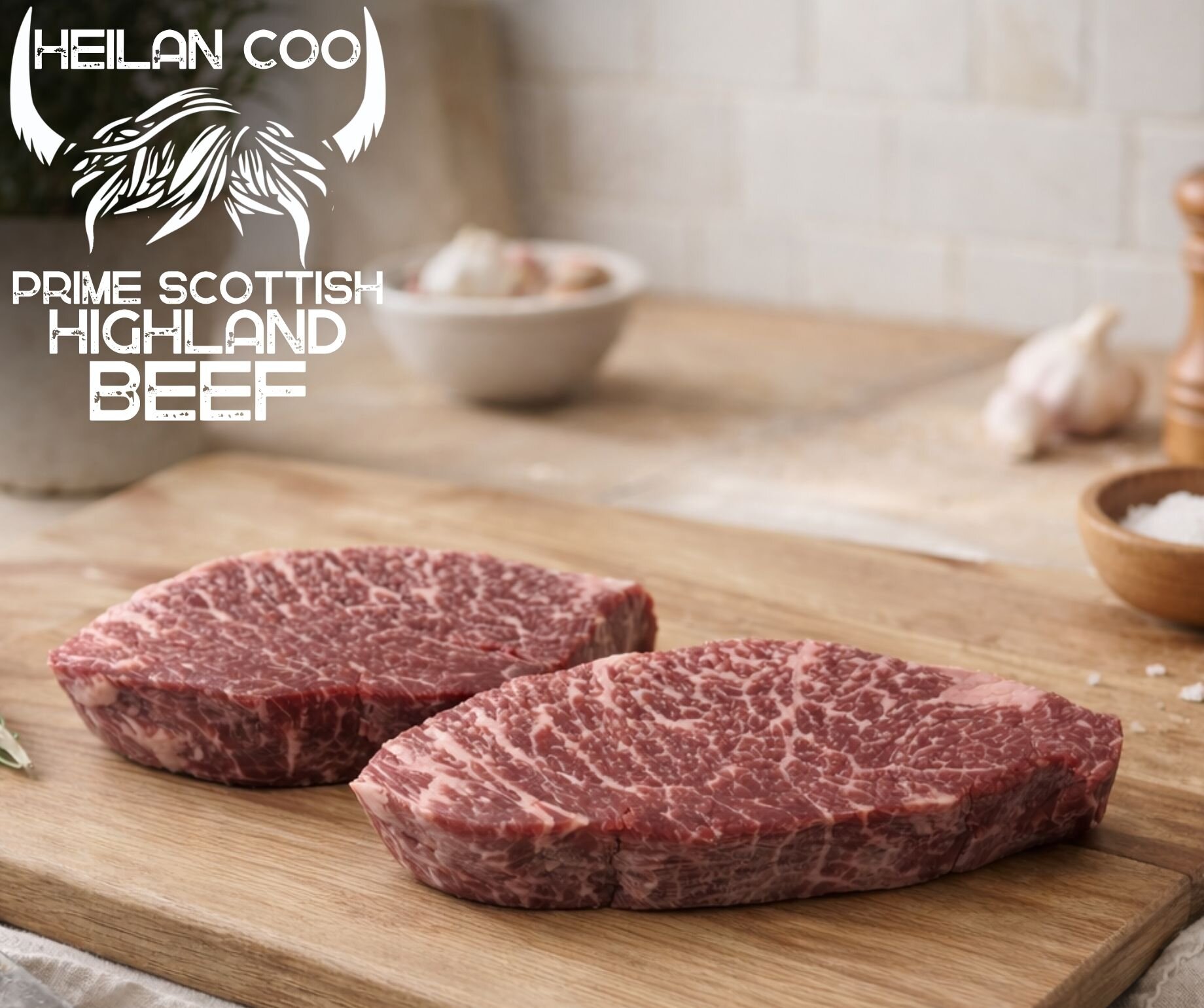 Prime Scottish Highland Cow beef, dry aged on the bone for exceptional depth of flavour. Cut from traditional heritage cattle and prepared for our exclusive Heilan Coo range — rich, tender and full of character.