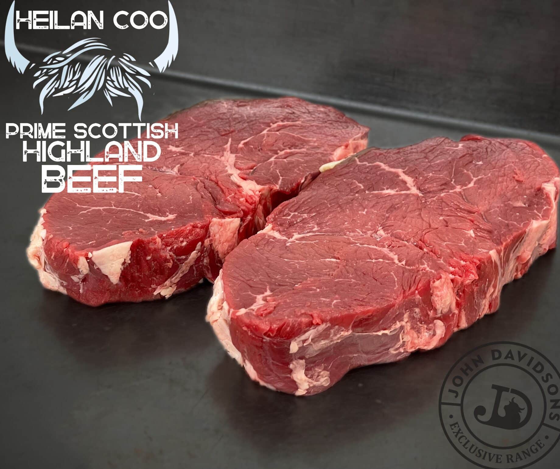Prime Scottish Highland Cow Beef. This is traditional heritage beef at its best. Dry aged as whole carcass beef prior to cutting and packing for our exclusive 'Heilan Coo' range.
