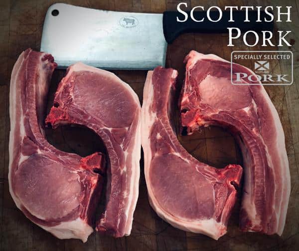 Professionally cut, extra meaty Scottish Pork Tomahawk Chops. These are Big and Beautiful for maximum flavour, cut from our locally sourced top quality Scottish pigs.