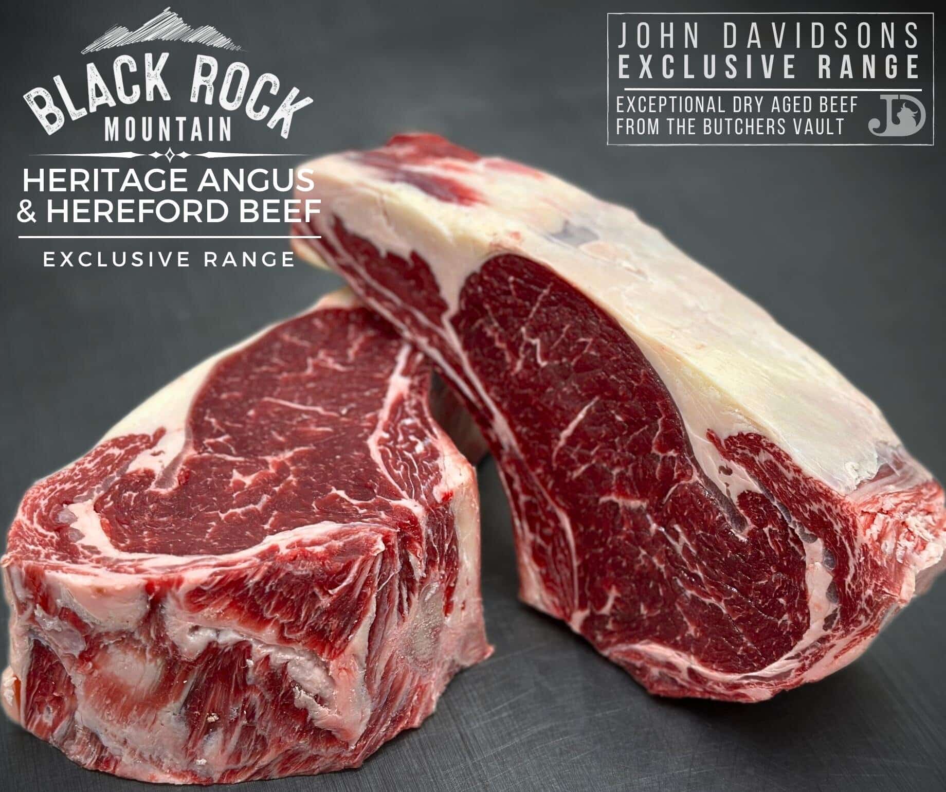 These extraordinary Prime Rib Steaks are part of our exclusive Black Rock Mountain Beef range, taken from hand selected heritage Angus and Hereford beef that’s been Dry Aged in our Himalayan Salt ageing chamber. These steaks are all cut to approx 2-3″ thick so they’re actually enormous! One of our favourite steak for sharing at home.