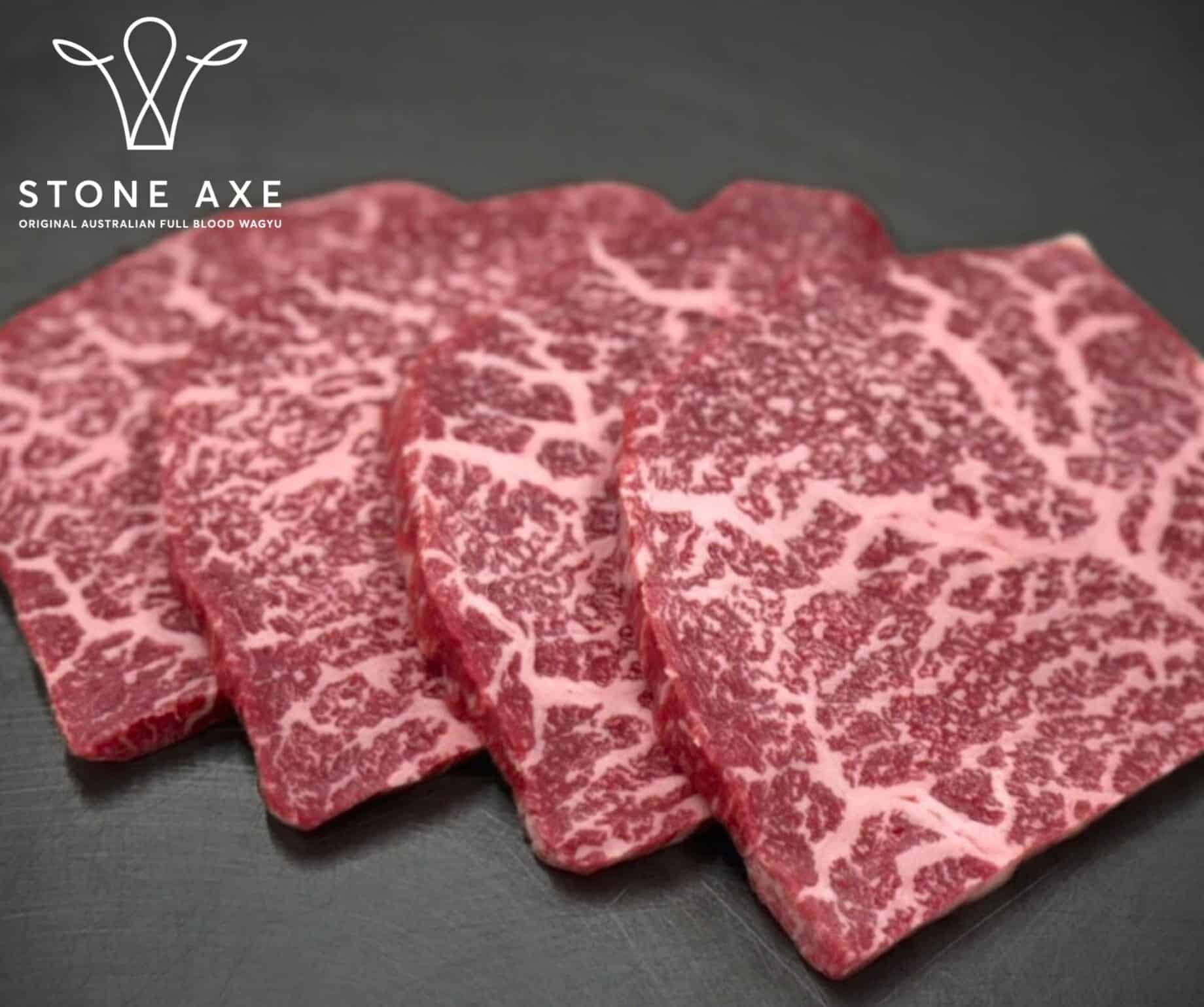 Stone Axe Full Blood Wagyu Yakiniku brings all the richness and tenderness of premium Wagyu to the grill, thinly sliced and ready for fast, flavour-packed cooking.