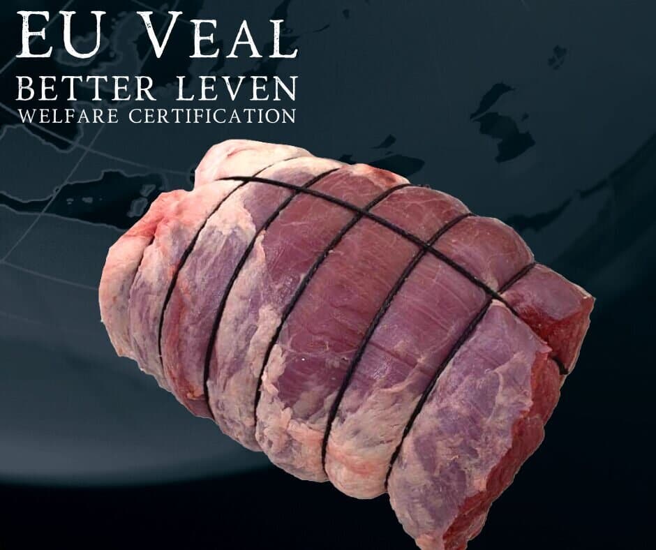 The Rose Veal roasting joints we have here are all professionally butchered by us. The Veal you see here is produced by Vitelco, Holland. It is selected for the supreme quality and produced to the ‘Better Leven’ certification of welfare standards.