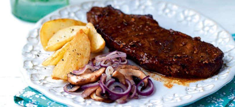 Remove the steaks from the marinade and cook under a preheated moderate grill or on a prepared barbecue according to your preference. Set aside to rest on a warm plate.