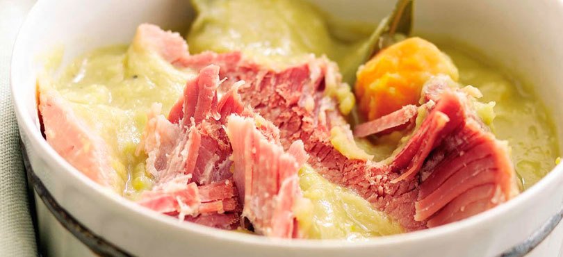 Bring to the boil, skim off the scum and reduce to a gentle simmer with lid on for about 1½-2 hours, until ham shank is tender and almost flaking and the peas have broken down and are ‘mushy’.